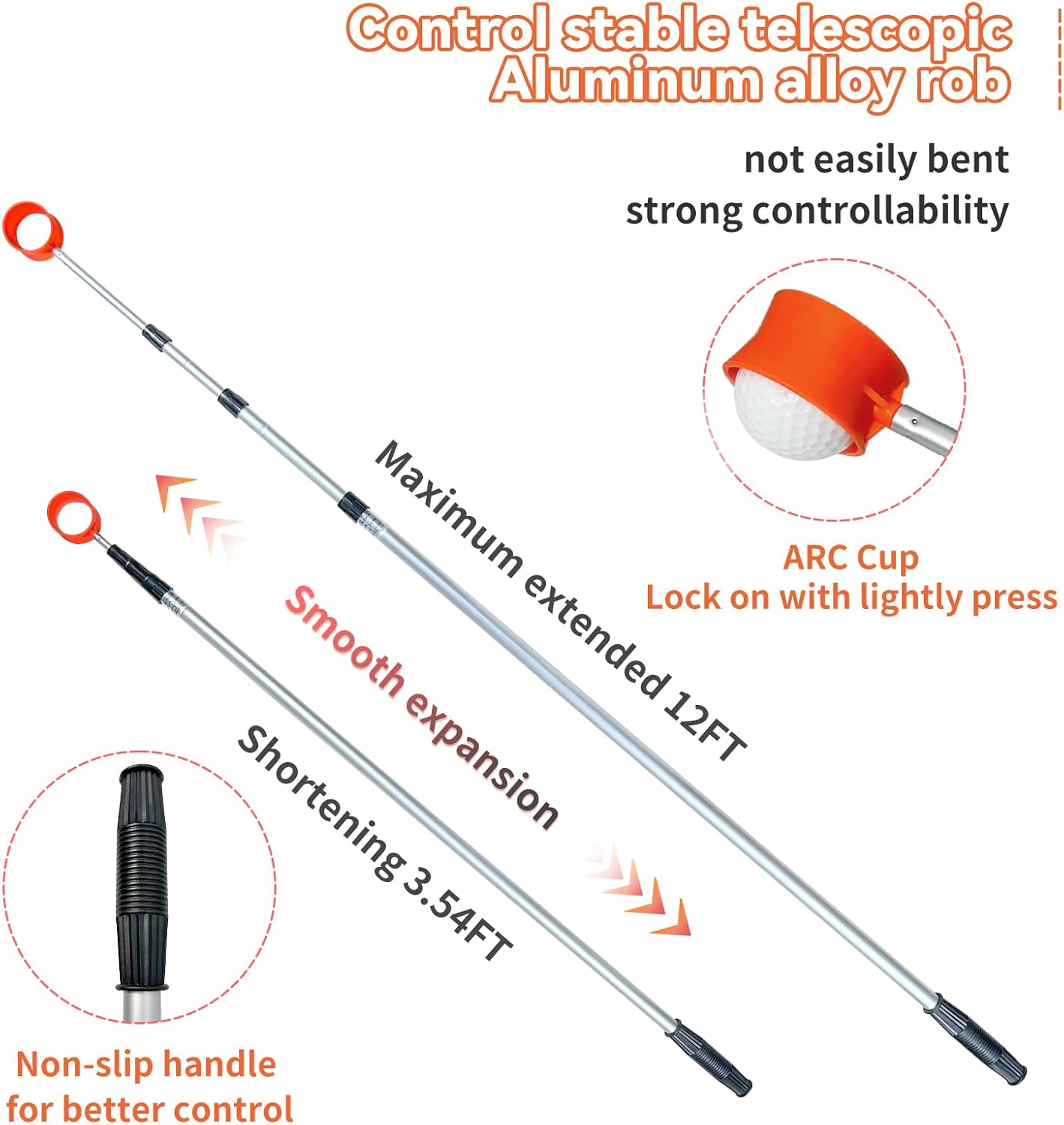 - 【Hard Plastic Arc Cup】The material of ball retriever head is strong, and not easy to damage in use. Because of the arc-shaped design, the ball retriever tool golf can lock the golf ball with a gentle press. Whether you are a new player or an experienced golfer, you can easy to use the golf retriever to pick up golf balls and it will save you money on lost golf balls and pay for itself.